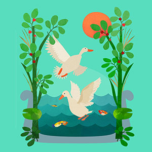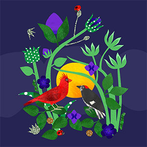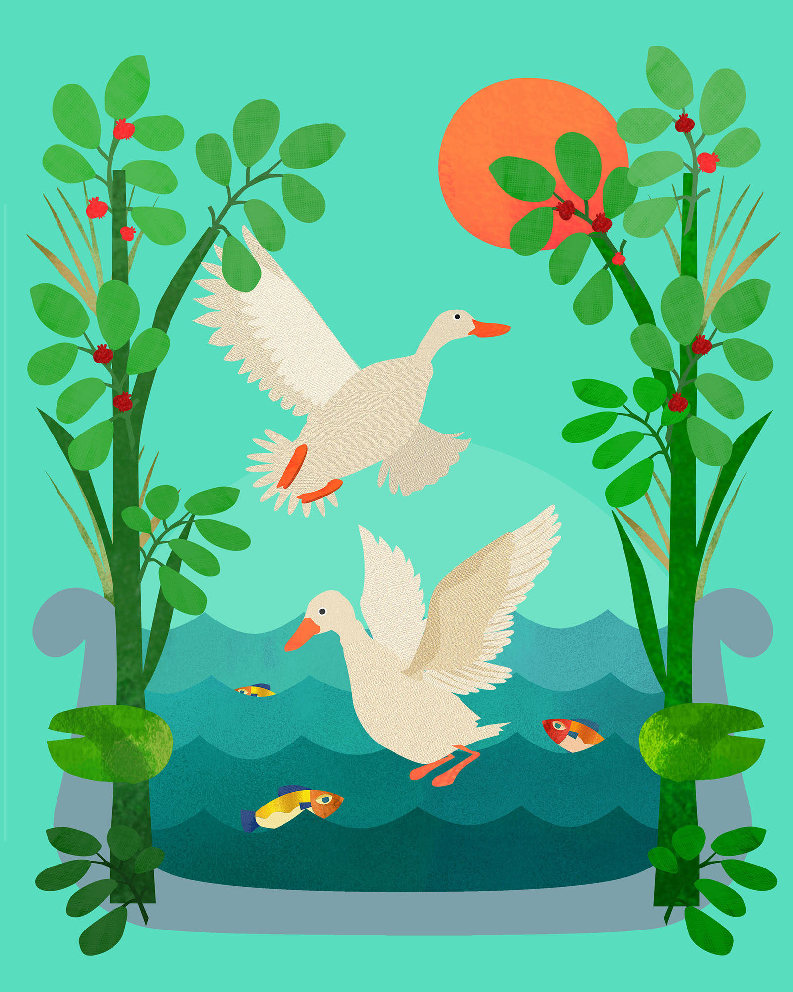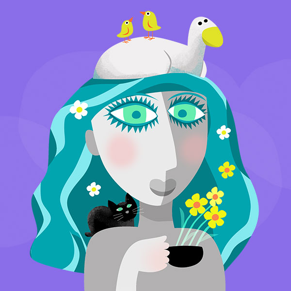 "I love infusing scenes of everyday life with unbounded nature, unexpected animals and mystical creatures. Most of all, I love to make people giggle and bring warmth to their hearts."