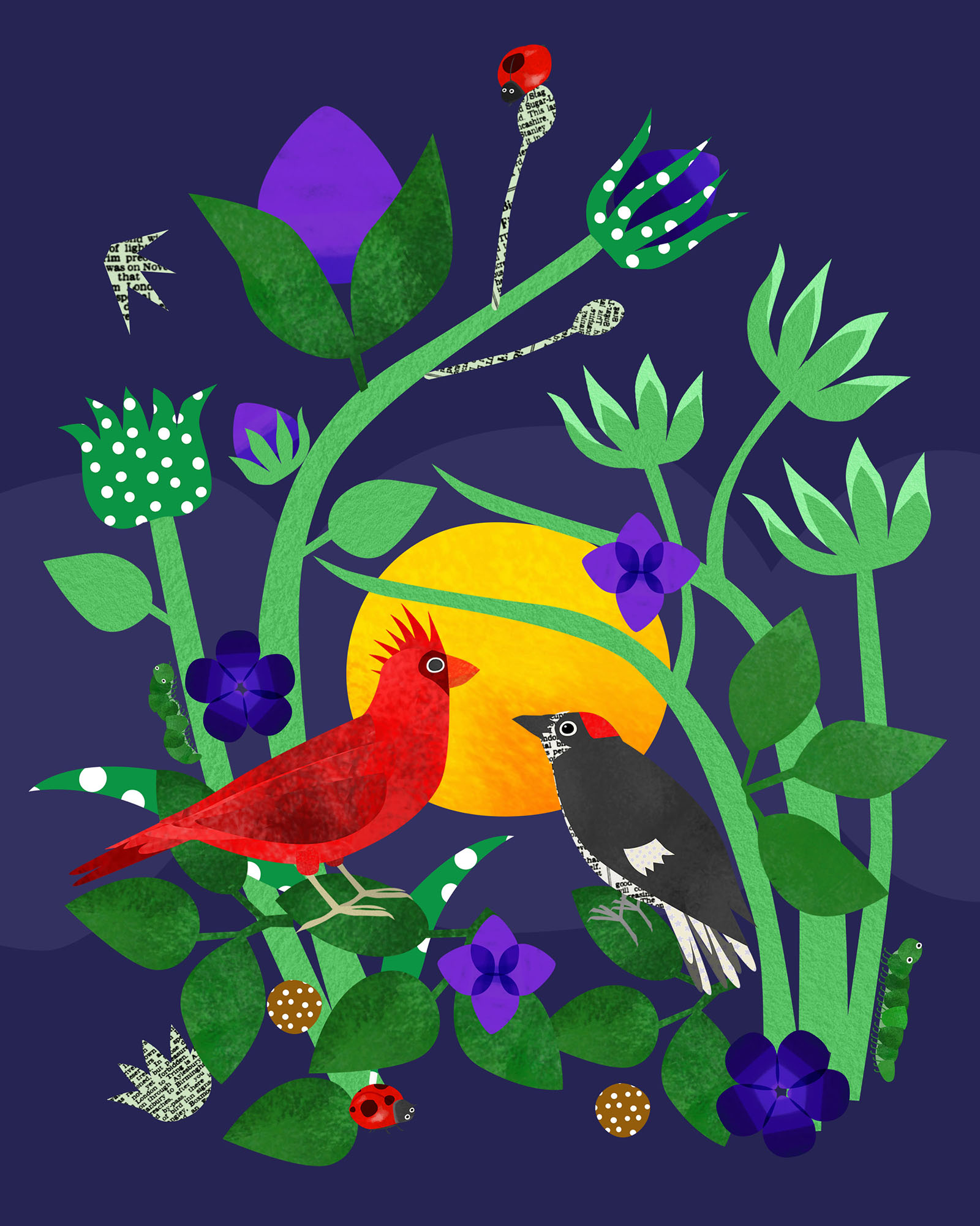 "I love infusing scenes of everyday life with unbounded nature, unexpected animals and mystical creatures. Most of all, I love to make people giggle and bring warmth to their hearts."